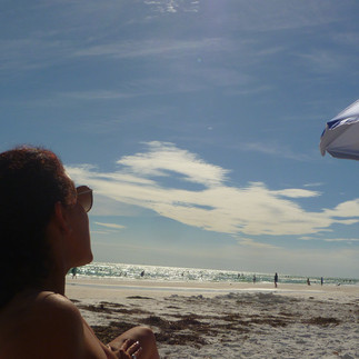 Ledo Key Beach, FLA. is my new jump off. The sand is soft like Johnson's Baby Powder, Gold Bond or Arm and Hammer. It sits on the skin, soft and bright. The Gulf Coast is extra special, the waters are Jade Green when seen through the lens of Ray's Bans. The beauty by my side makes the clouds look like powdery white Marlins, dashing through the blue skies, dippin' in the 90 degree waters on the horizon, in the Gulf.